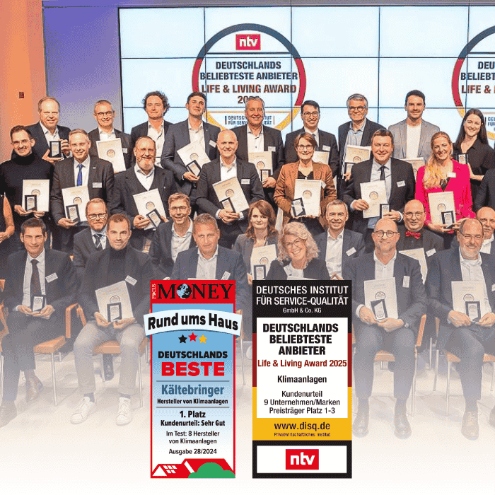 FOCUS MONEY hat uns als Deutschlands Beste - Hersteller von Klimaanlagen ausgezeichnet! Im Test von 8 Herstellern erhielten wir den 1. Platz und ein Kundenurteil von "Sehr Gut".