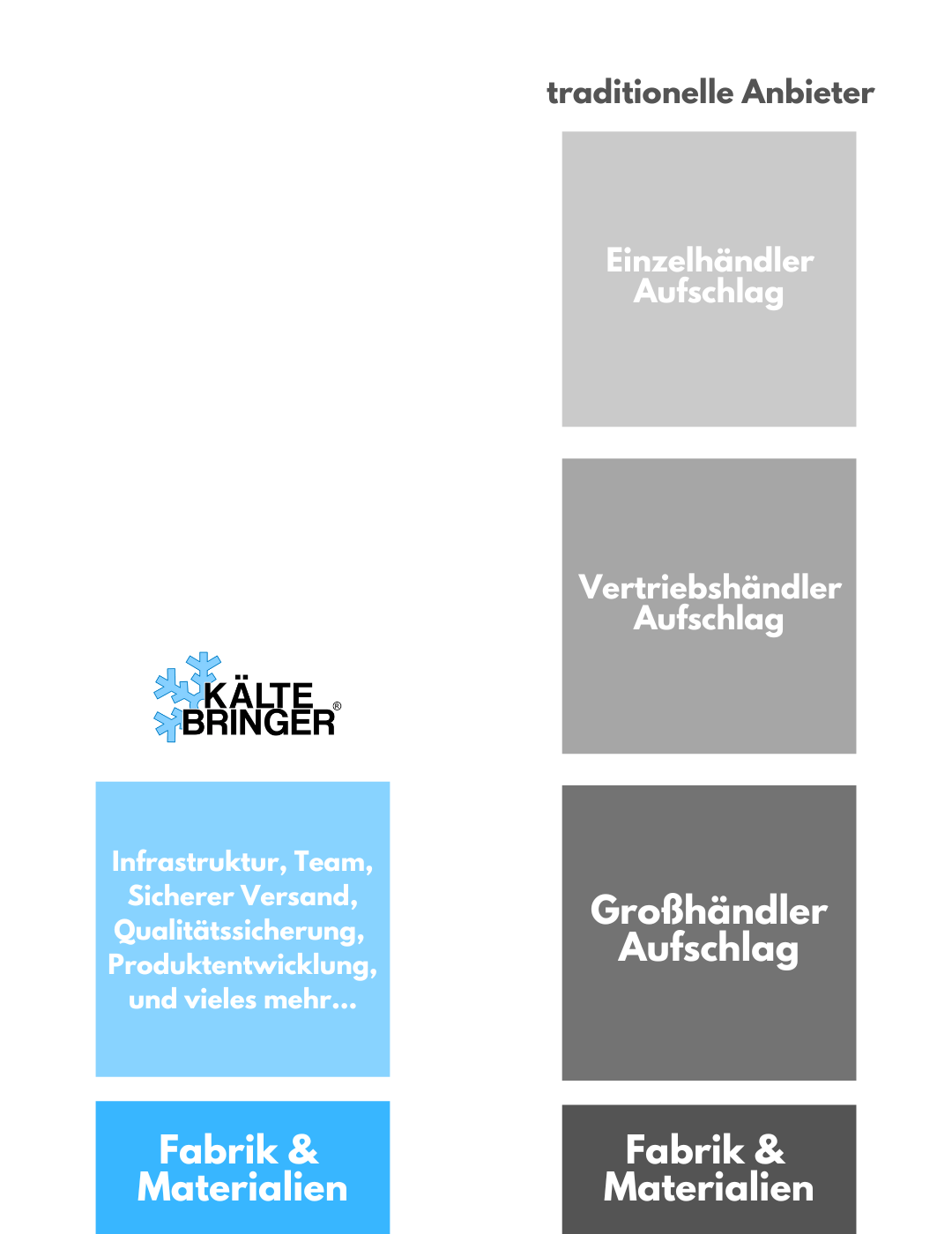 Traditionelle Klimagerätehersteller haben komplexe Vertriebskanäle und -prozesse - wir nicht. Indem wir diese Ebenen entfernen und direkt an unsere Kunden verkaufen, können wir unsere Produkte zu einem ehrlichen Preis anbieten.